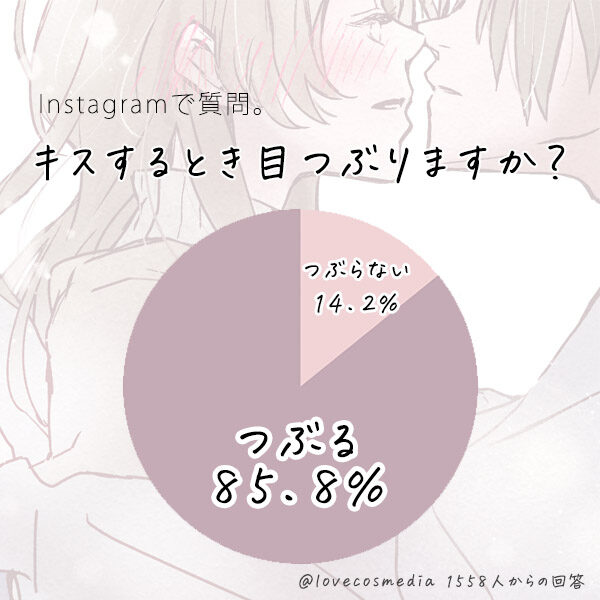 キスの最中、目をつぶる人とつぶらない人、どちらが多いのでしょうか?早速Instagramでアンケートをとってみました。